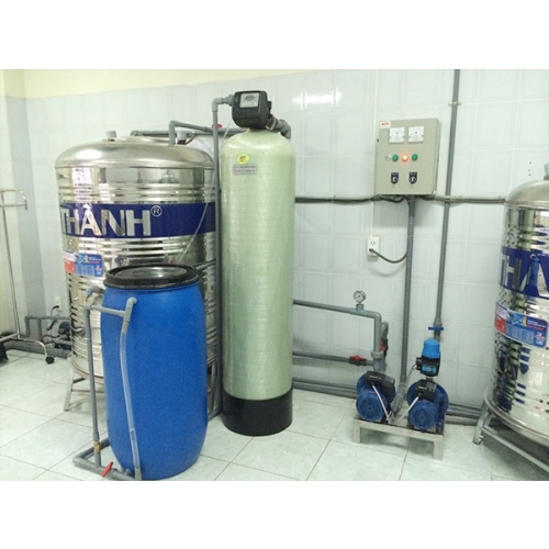 Áp lực dòng nước tiếp tục đẩy qua hai cột lọc tinh được lắp song song (5 µm). Tại đây nước được lọc tinh thông qua bộ lọc 20” có kích thước 5 µm nhằm loại bỏ những tạp chất lơ lửng bé có kích thước > 5 µm tạo cho nước có độ trong tốt nhất, đảm bảo cho khả năng hoạt động ổn định của hệ thống thẩm thấu ngược (RO). Nước sau lọc tinh đã hoàn toàn được khử cứng và chảy vào bể chứa nước mềm.